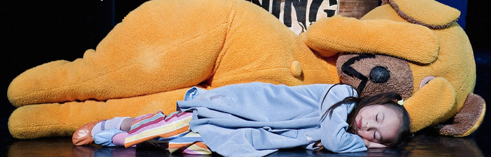 Små Lunapiger vrimler frem på scenen, da Bamse falder i søvn.