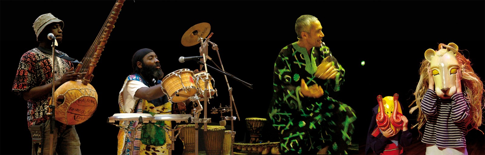 Små og store hænder begynder at klappe, da tre mænd kommer ind i rummet. Mændene er iført forskellige, mønstrede trøjer og store smil, imens de synger og klapper sig vejen op til scenen. Den ene, Moussa Diallo, stiller sig forest på scenen og tager sin blomstrede bas på. Med et stort smil kigger han ud på publikum og fortæller, at nu skal de på en rejse til de varme lande. Han slår armene ud mod det våde vintervejr udenfor og griner: “En kontrast!”.